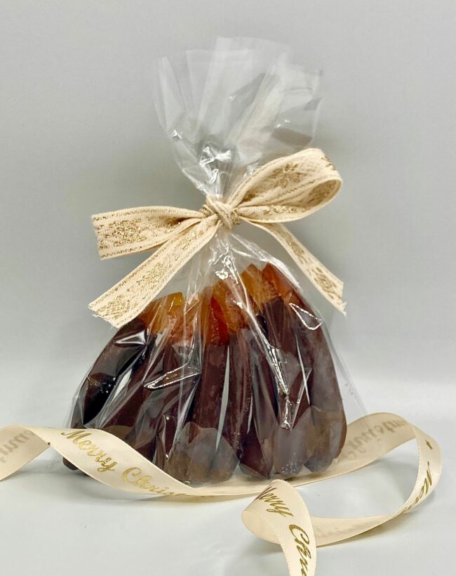 Filetto di zenzero candito ricoperto da cioccolato fondente